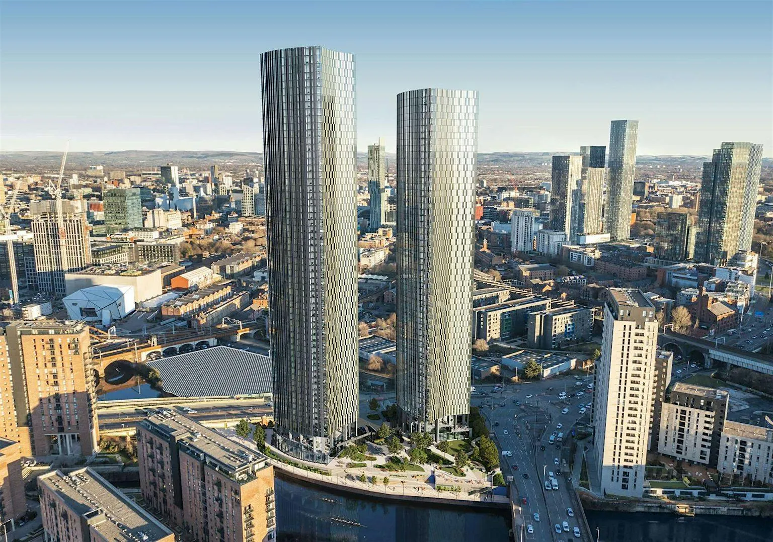 Boasting a stunning riverbank setting with 130m of scenic riverbank frontage and 1.6 acres of riverside park, featuring both a children’s play area and dedicated dog park, Trinity Island will be an area brimming with culture, enterprise and innovation featuring 2 Towers of 55-60 Storeys each.